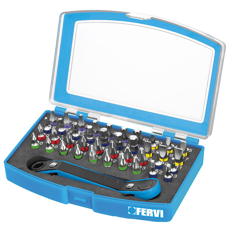 Made of s2 steel and nichel coated, composed of 40 bits and 1 72t ratchet handle.