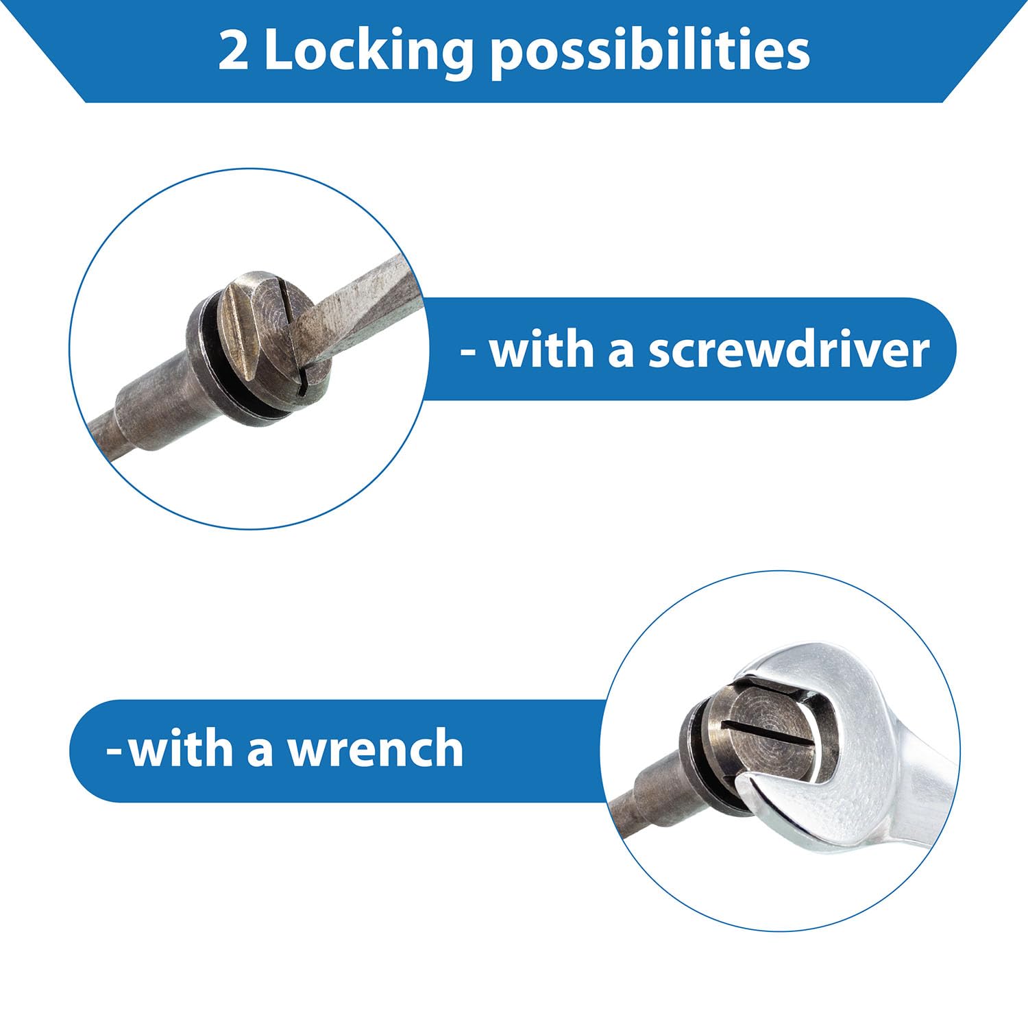 Estos accesorios para amoladora de troquel de 1/4 se pueden bloquear con un destornillador o una llave. Esto garantiza más comodidad y flexibilidad para que pueda elegir el método que se adapte a sus preferencias y herramientas.