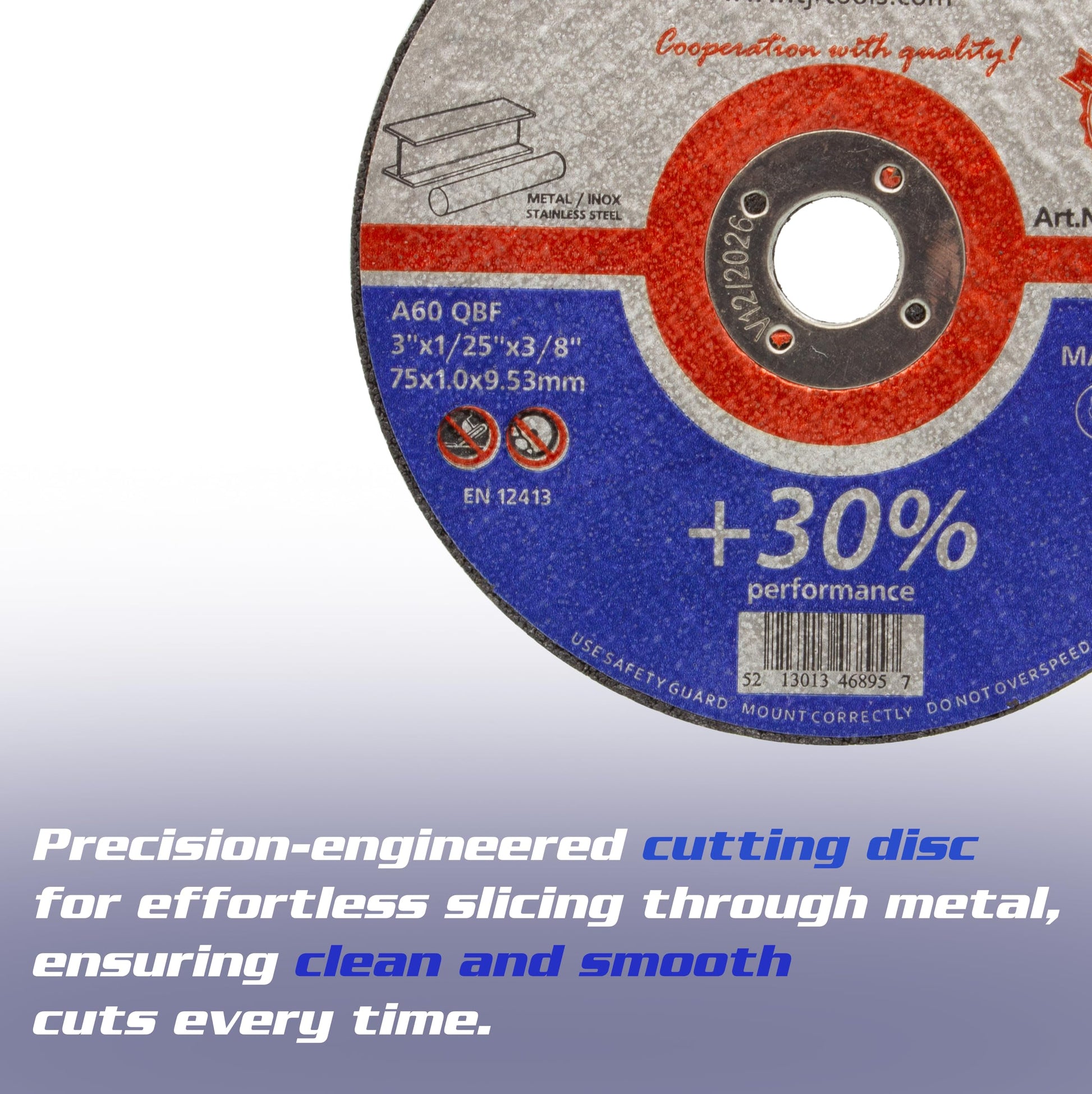 Este mandril de rueda presenta un Orificio de cenador de 3/8 de pulgada y vástago de ¼ de pulgada. El juego de mandril es compatible con una amplia gama de discos de corte, lo que lo hace adecuado para una amplia gama de aplicaciones de corte.