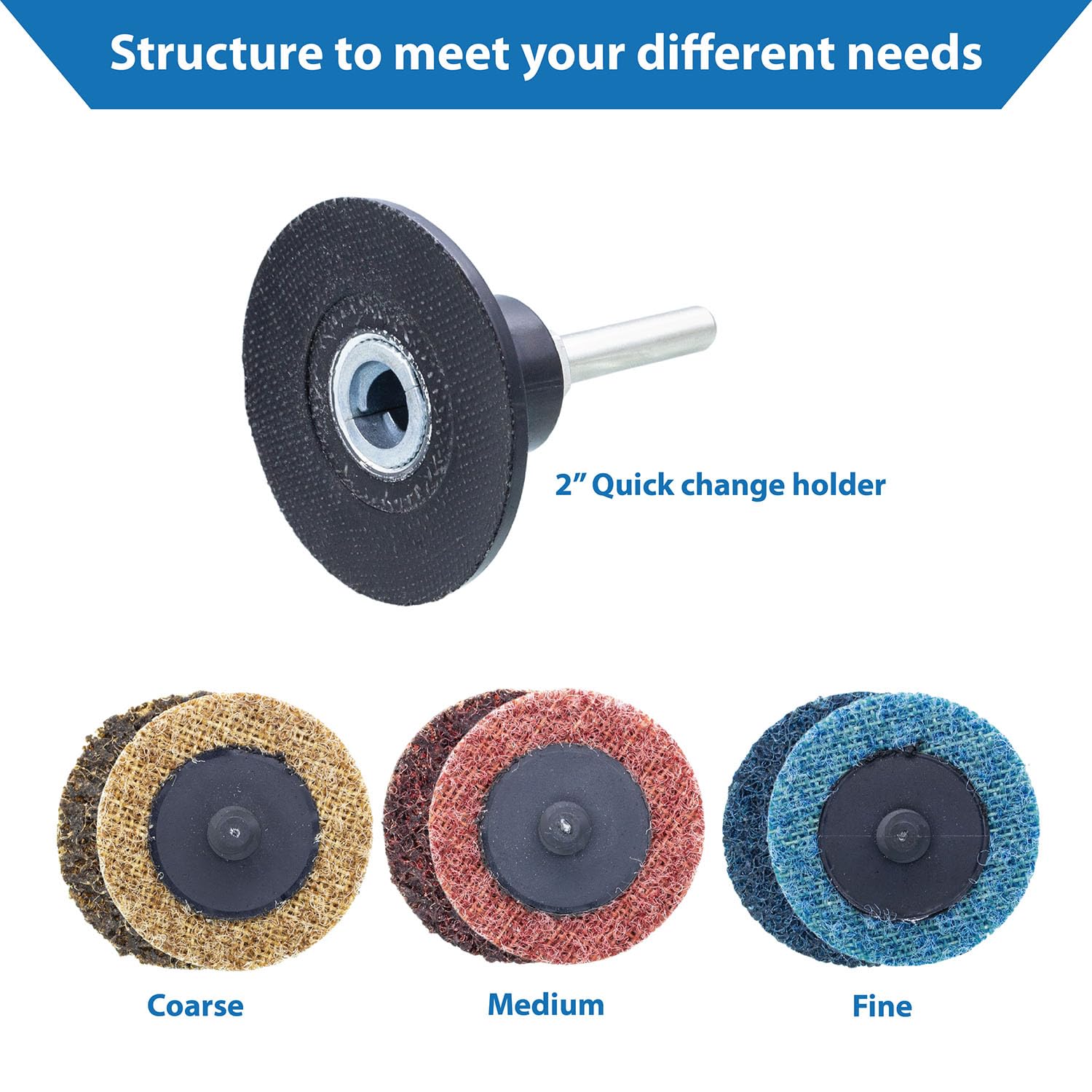 - Non-Woven Quick Change Discs: Featuring a non-woven construction, these discs are perfect for rust removal, paint stripping, and surface conditioning.