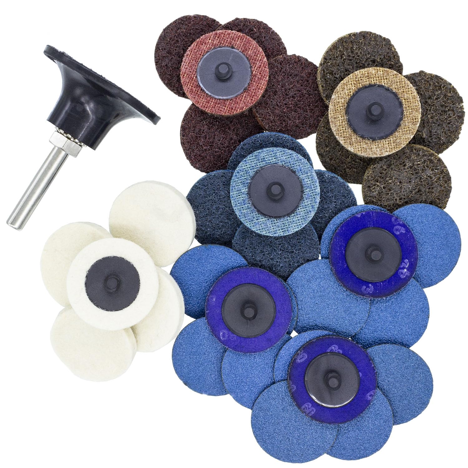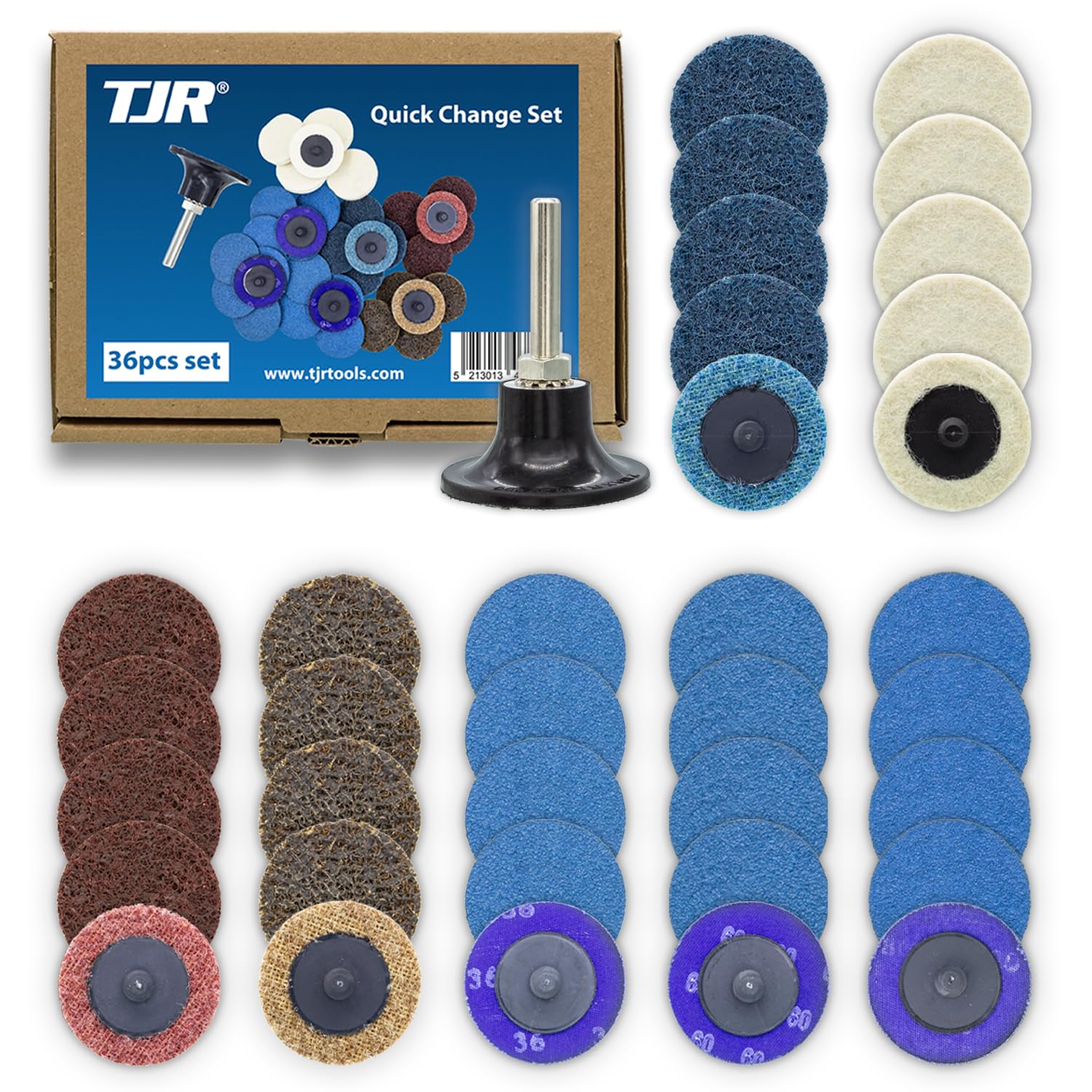 TJR® 2" Quick Change Discs Type R 35PCS Set with 1/4" Holder Roll Lock Type for Die Grinder – Ideal for Surface Conditioning, Burr Removal, Deburring, Grinding, Polishing, Rust and Paint Removal