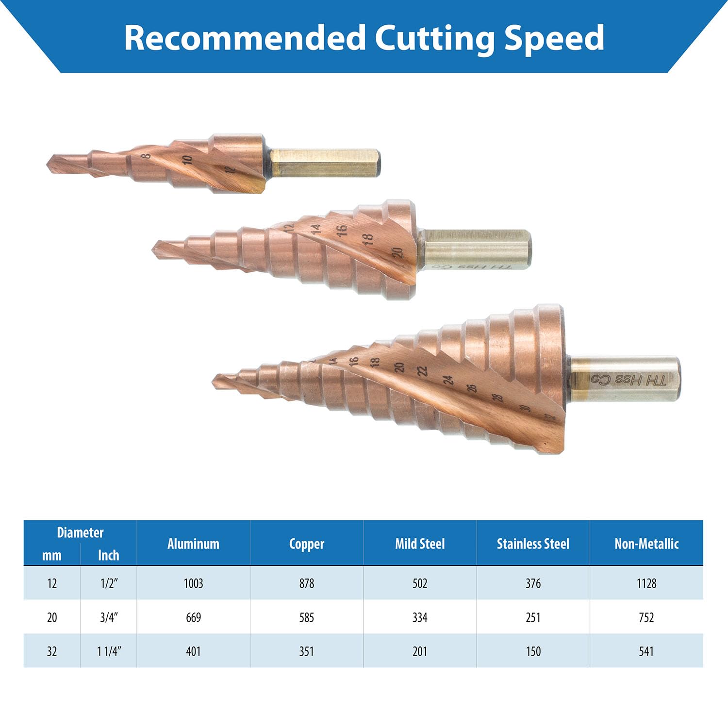 The drill bits also feature laser-engraved sizes on the flute, making it easy to identify the size you need, and the standard round chamfering design ensures the versatility of the set. These step drills are suitable for use on a wide range of materials, including wood, plastic, aluminum, PVC, fiberglass, and fine metal (with thickness ≤ 5mm).